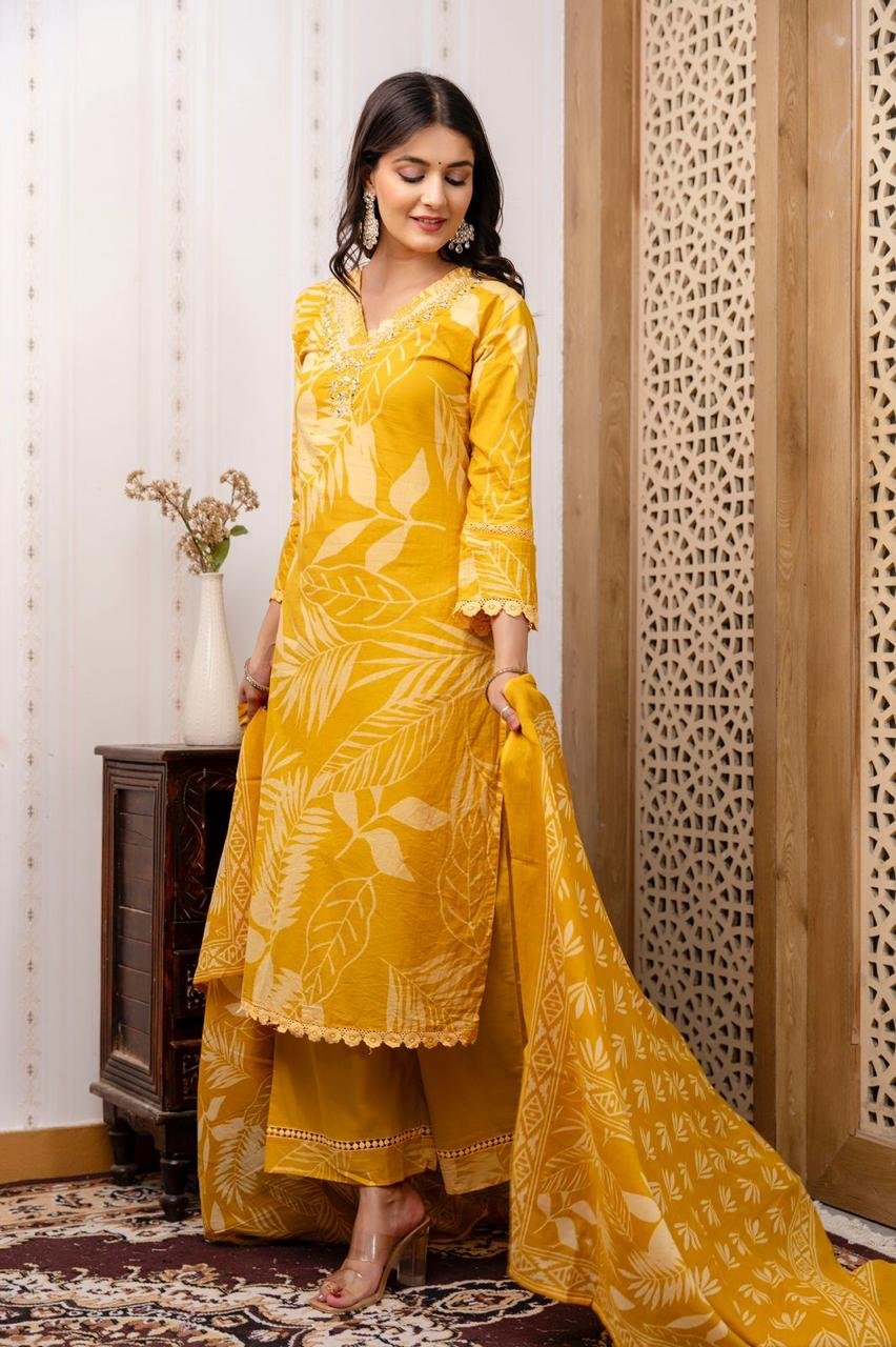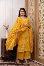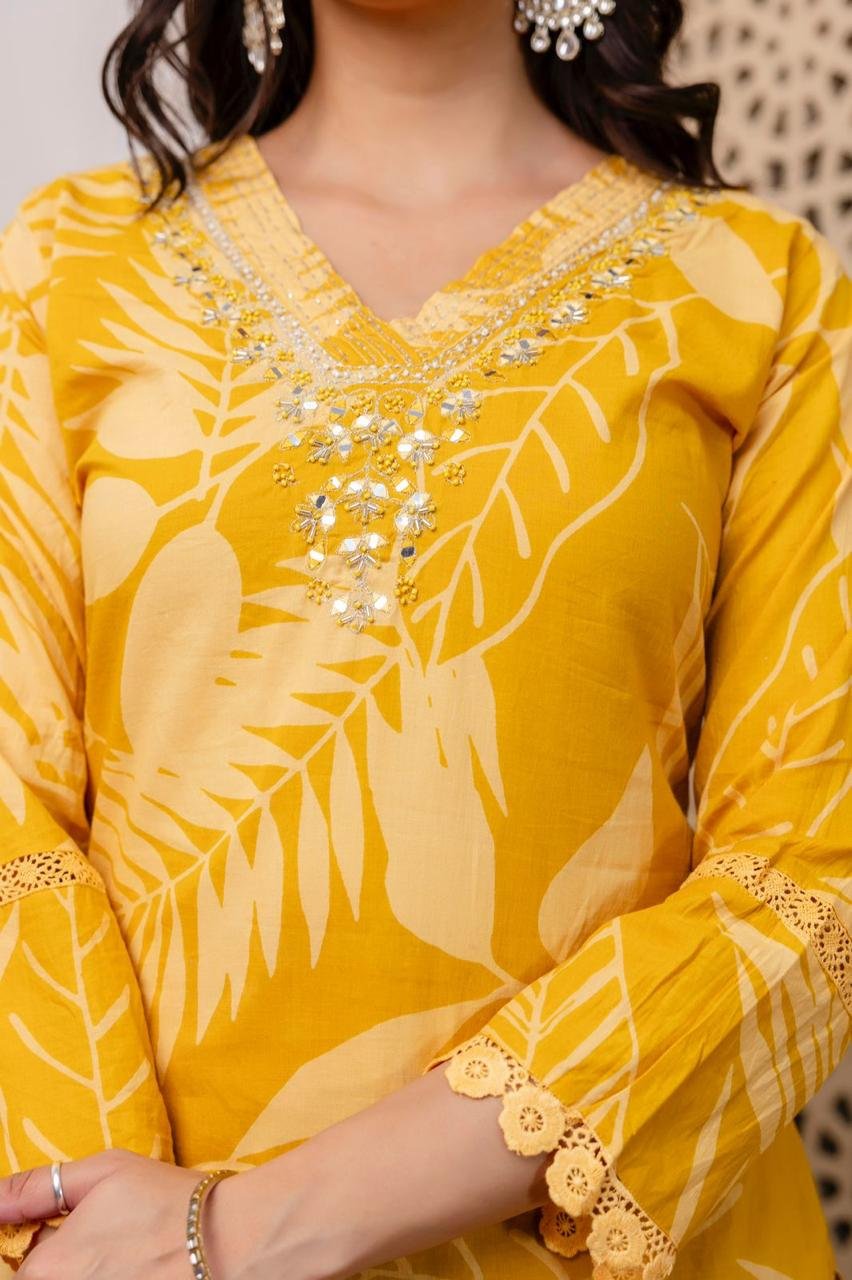 Be the first to review “Floral Printed Notch Neck Straight Kurta with Palazzo (Yellow)”