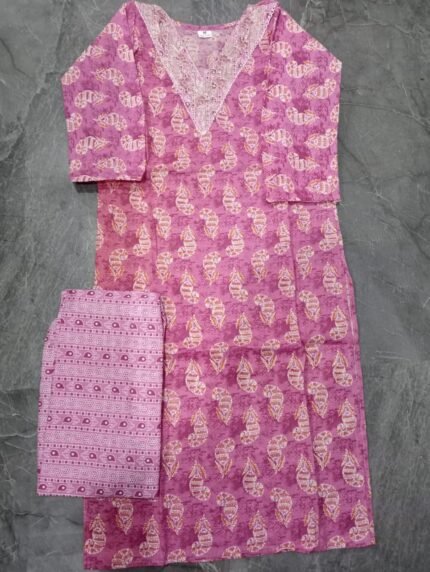 Floral Printed Notch Neck Straight Kurta with Palazzo (Pink)