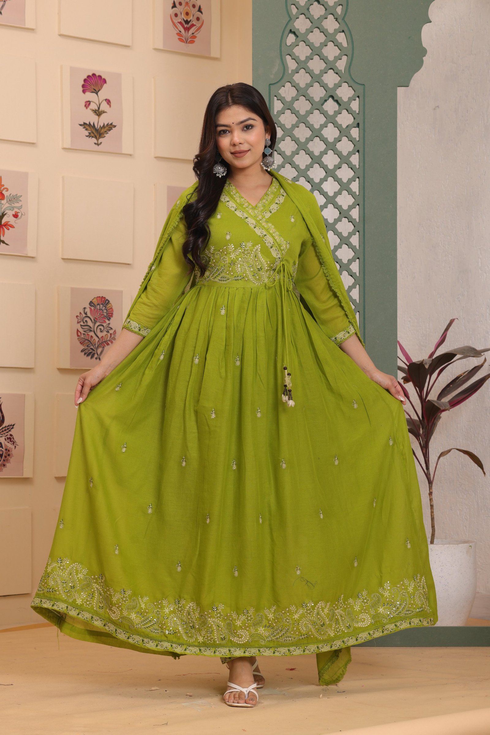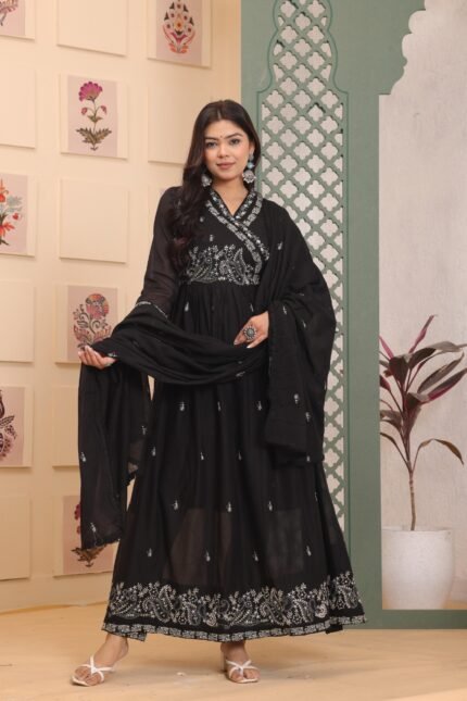 - Graceful Fit: Flowy Anarkali silhouette for a flattering look.