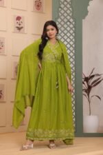 Printed Anarkali Kurta, Bottom & Dupatta Set (Green)